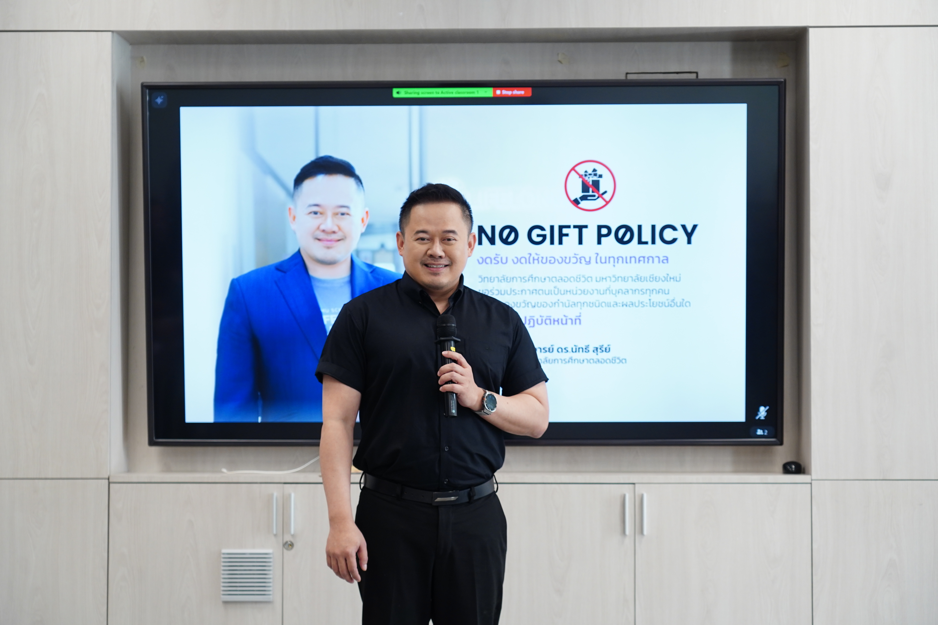 วิทยาลัยการศึกษาตลอดชีวิต มหาวิทยาลัยเชียงใหม่ จัดการประชุมภายในเพื่อ แสดงเจตนารมณ์และดำเนินนโยบาย “No Gift Policy” เพื่อเสริมสร้างหลักธรรมาภิบาล คุณธรรม และความโปร่งใสในการปฏิบัติงานของบุคลากรทุกระดับ เมื่อวันที่ 15 มกราคม 2569 ณ ห้อง EZ ACTIVE CLASSROOM 1 อาคารศูนย์นวัตกรรมการสอนและการเรียนรู้ มหาวิทยาลัยเชียงใหม่