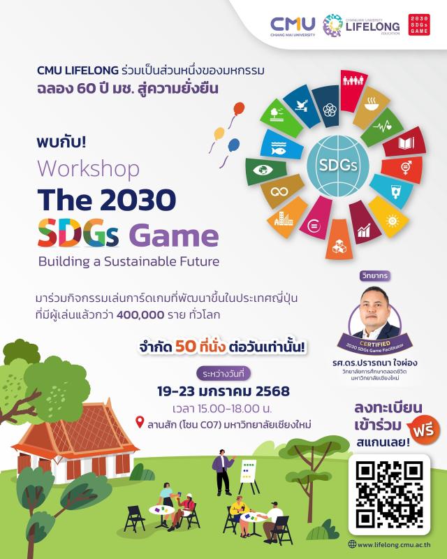 วิทยาลัยการศึกษาตลอดชีวิต ร่วมฉลอง 60 ปี แห่งการสถาปนามหาวิทยาลัยเชียงใหม่ จัดเวิร์คชอป The 2030 SDGs Game - Building a Sustainable Future ให้เข้าร่วมฟรี