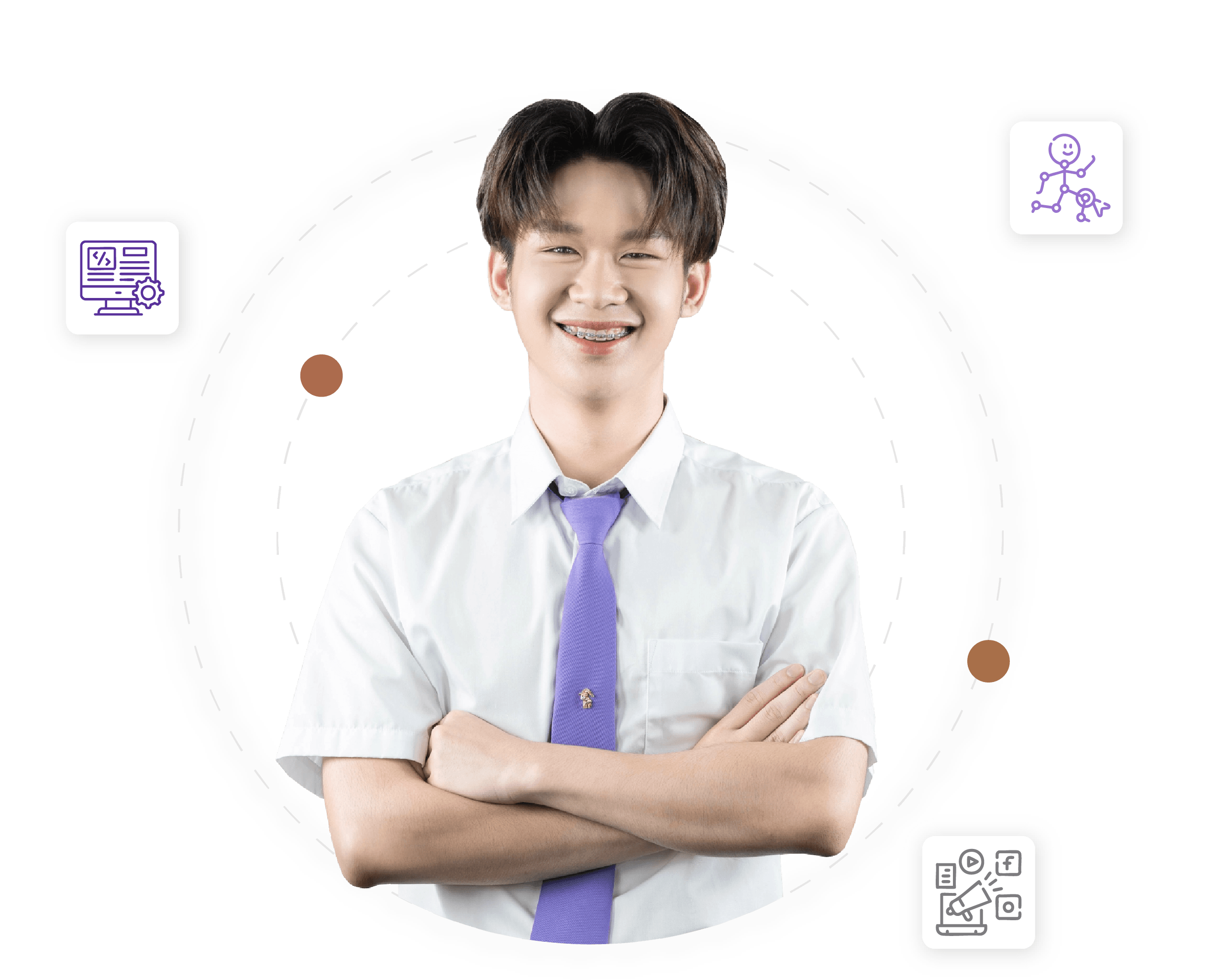 ผู้เรียนจะได้พัฒนาทักษะดิจิทัลที่เป็นที่ต้องการสูง ผ่านหลักสูตรที่ทันสมัยและมีมาตรฐานสากล ครอบคลุมทั้ง Hard Skills และ Soft Skills เน้นการเรียนรู้เชิงสร้างสรรค์และประยุกต์ใช้จริง พร้อมต่อยอดสู่การทำงานและการสร้างนวัตกรรมในอุตสาหกรรมดิจิทัล