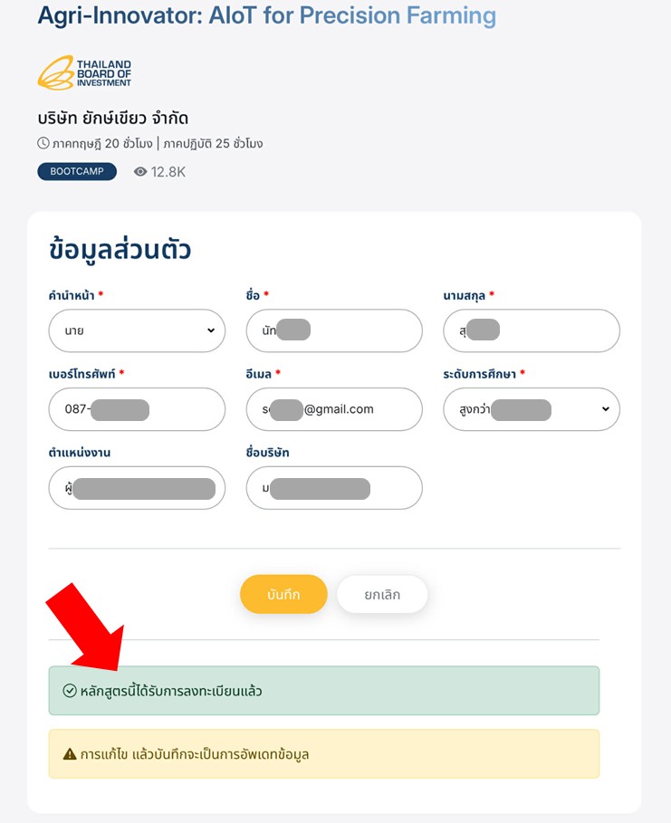 ตรวจสอบข้อมูลของท่าน หลังจากนั้นคลิก "บันทึก"