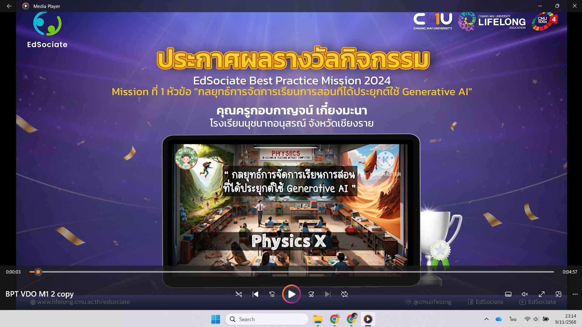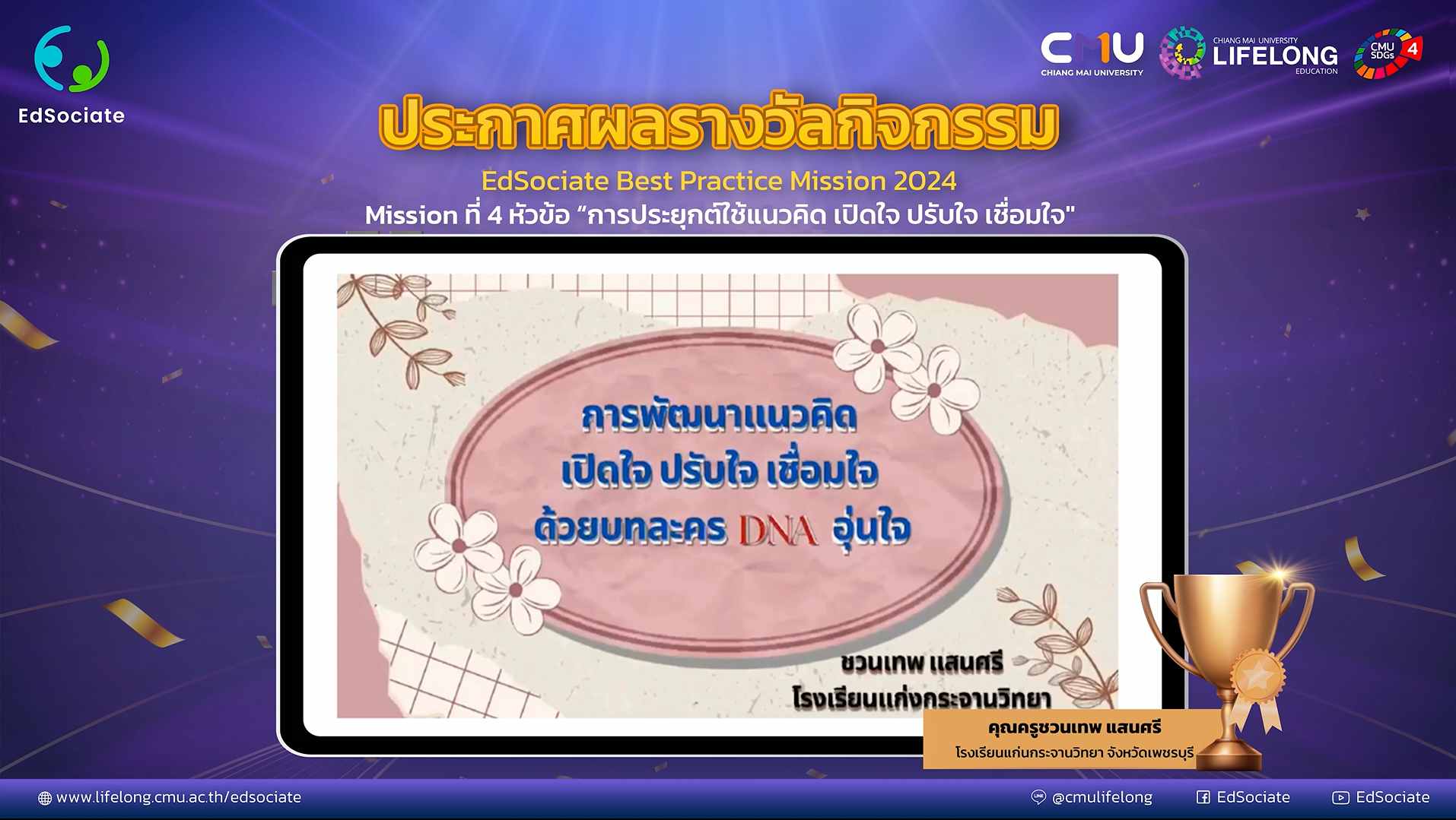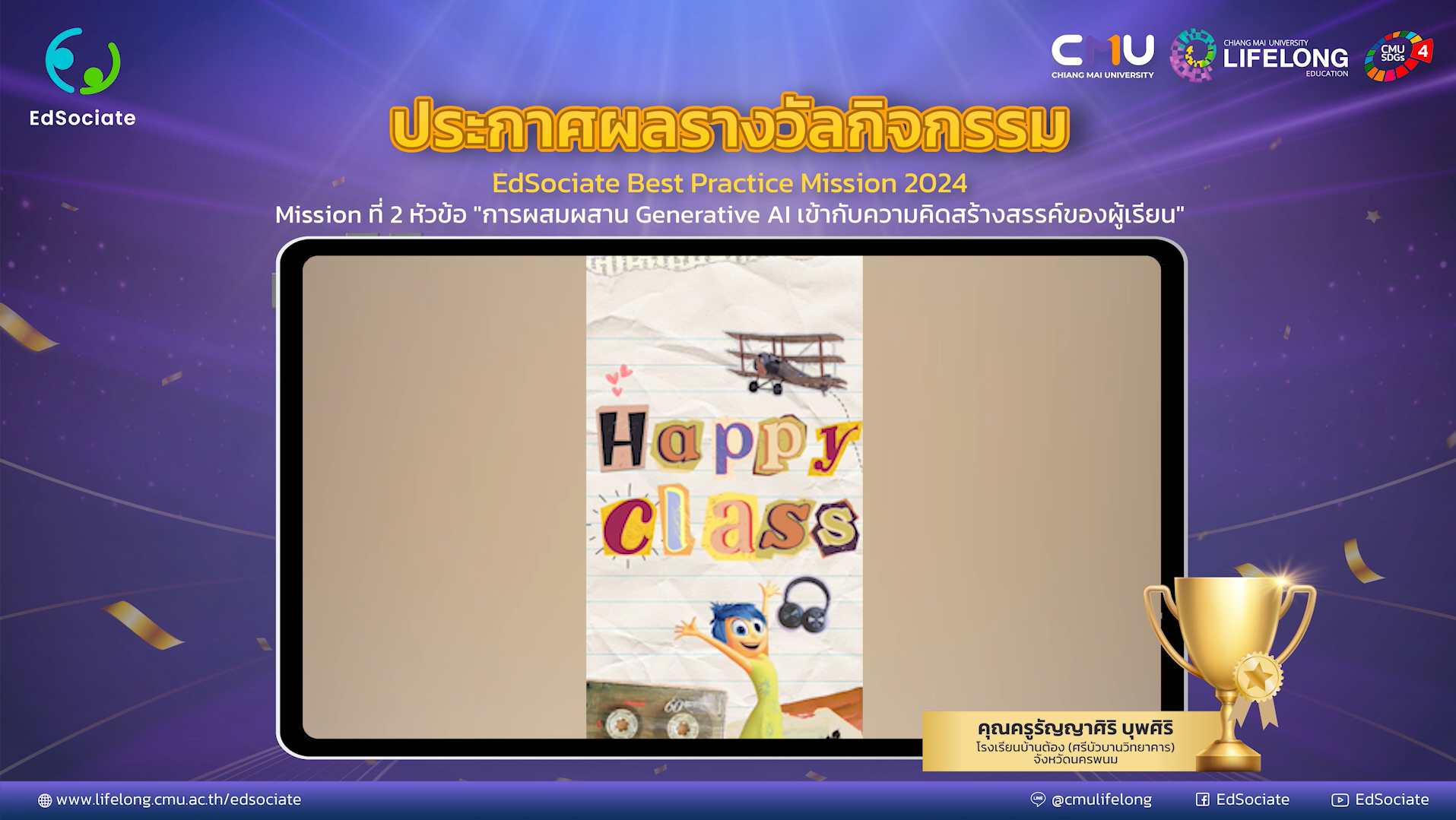 ผลงานการประยุกต์ใช้ความรู้ผ่านกลยุทธ์เพื่อพัฒนาการเรียนการสอน ภายใต้หัวข้อ MISSION 2 ด้วยการประยุกต์ใช้แนวคิดการเสริมสร้างและการจัดการพื้นที่ปลอดภัยในโรงเรียน เพื่อให้เห็นถึงบรรยากาศการจัดกิจกรรมการเรียนการสอนและผลลัพธ์การเรียนรู้ ที่เกิดจากการประยุกต์ใช้การประยุกต์ใช้แนวคิดการเสริมสร้างและการจัดการพื้นที่ปลอดภัยในโรงเรียน เป็นเครื่องมือและวิธีการในการสร้างสรรค์และบูรณาการณ์เข้ากับความคิดสร้างสรรค์ของผู้เรียนกับการเรียนการสอนของครู-อาจารย์